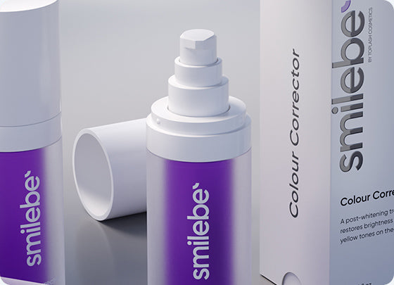 By applying purple to the teeth, Smilebe Corrector neutralizes yellow tones and brightens your smile.